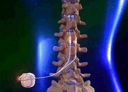 | In speziellen Fällen, um eine langfristige Schmeztherapie zu erzielen, ist es notwendig eine rückenmarksnahe Gabe von Medikamenten zu gewährleisten. Dazu wird eine permanent fördernde Pumpe implantiert die regelmäßig Schmerzmittel an das Rückenmark pumpt und Schmerzfreiheit garantiert. |