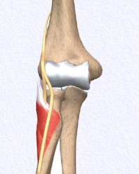 Das Supinatortunnelsyndrom ist eine Einengung des Nervus radialis im Bereich des Unterarmes, bei dem der Nerv durch Überbeanspruchung, z.B. Tennisspielen, bei Entzündungen oder nach Unfällen beeinträchtigt wird. Es kommt dabei zu einer zunehmenden Streckschwäche der Finger einhergehend mit Gefühlsstörungen. Eine operative Entlastung des Nervs ist nach erfolgloser konservativer Therapie notwendig. |